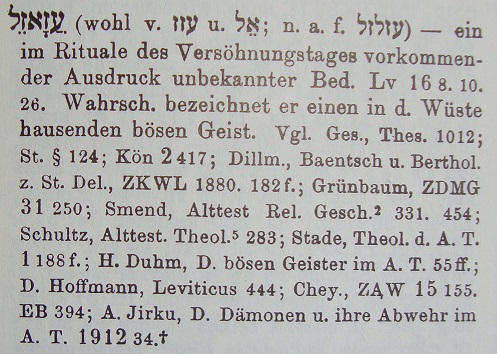 hebräischer Eigenname für einen Wüstendämon, dem am Versöhnungstage ( |