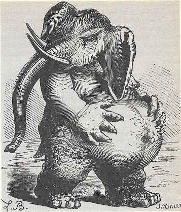 Bodin* glaubt, Behemoth sei niemand anderes als der ägyptische Pharao, der die Hebräer verfolgte. Hiob spricht von Behemoth als einer gräßlichen Kreatur. Manche Kommentatoren behaupten, damit sei der Walfisch gemeint, andere, der Elefant, doch es gab auch Ungeheuer, deren Arten untergegangen sind. Im Prozeß Urbain Grandiers** sieht man, daß Behemoth sehr wohl ein Dämon ist. Delaure meint, daß man ihn für ein riesiges Tier gehalten hat, weil er sich die Gestalt aller großen Tiere gibt. Er fügt hinzu, Behemoth könne sich auch perfekt in einem Hund, einem Elefanten, einem Fuchs und einem Wolf verbergen. * Bodin, Daemonomanie der Hexer, Buch 1, Kap. 1 ** Siehe Nicolas Aubin, Die Geschichte der Teufel von Loudun, ZerlingVerlag, Berlin 1981. (Anm. d. Hrsg.) |