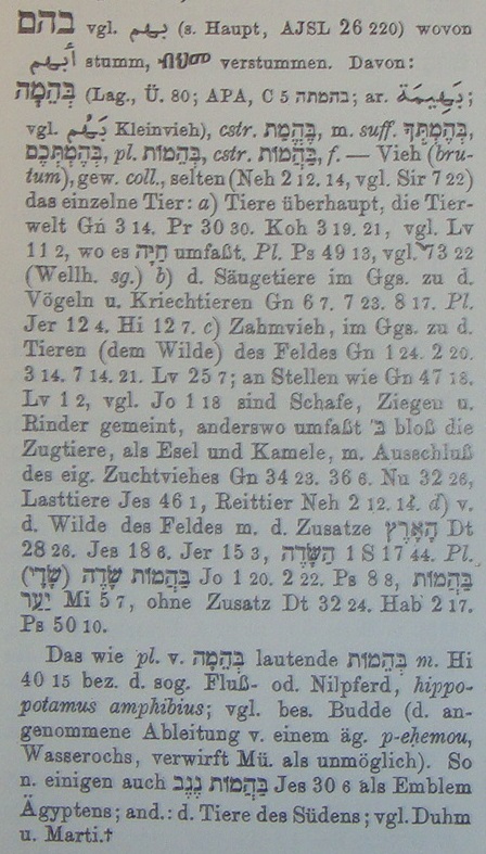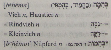 Hebräisch "Behema" = das Tier, Vieh, Haustier