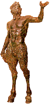 ehemals arkadischer Wald- und Weidegott, bärtig, gehörnt und mit Bocksfüßen, gehörnter Lichtträger, höchst triebhafter Fruchtbarkeits- und Vegetationsgott, Sohn des Hermes und einer Nymphe, im Spätmittelalter als Teufel geltend.