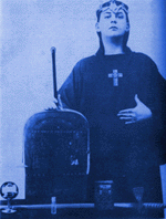 Aleister Crowley (12.10.1875 - 01.09.1947), Sohn reicher Eltern, für die Jahrhundertwende dem Sex, der Freiheit, der Emanzipation und dem Ego überaus aufgeschlossener Zeitgenosse, Freund der ägyptischen Götterwelt, reiste 1904 nach Kairo und wurde dort von überirdischen Eingebungen eines Geistes namen "Aiwass" ins ägyptische Museum gelotst, wo er vor dem Ausstellungsstück mit der Nr. 666 stehen blieb: Seitdem hielt er sich für "das große Tier".