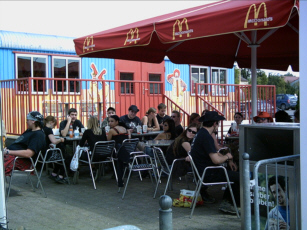 Mit dem Shuttle-Bus fuhr ich nach Dinkelsbühl. Bis dort der Bus nach Ansbach abfuhr, musste ich lumpige eineinhalb Stunden warten. Das scheint auf dem Dorf ganz normal zu sein. Ein McDonalds war sogar dort, das - wie ihr seht - grade den Umsatz des Jahres machte: schwarze Invasion