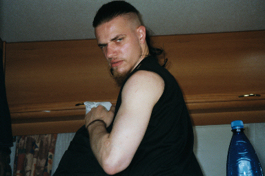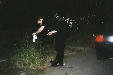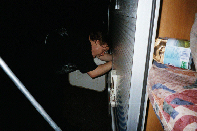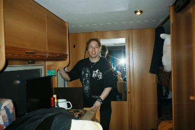 Mitten in der Nacht - am letzten Tag - muss doch gar die Gasflasche verrecken. Tapfer und unter Lebensgefahr wechselt SK mit Taschenlampe (von Schnaken umflattert) das Teil aus. Aus dem Heck des Womo - wo sich eine Gasexplosion wohl noch am wenigsten auswirken dürfte - hab ich nix besseres zu tun, als dämliche Fotos zu schießen, hä hä