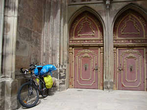 mein Rad unter dem Kirchendach