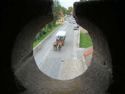 aus dem Dinkelsbühler Torturm: die Pferdekutsche