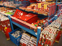 Ich brauchte unbedingt auch irgendein Kissen unter dem Kopf, denn ich schlief furchtbar schlecht auf meinem Luftbett. Drum suchte ich nach einem entsprechenden Laden und fand dann auch einen T€di-Markt: Dort kaufte ich irgendso ein Kinderspielzeug-Surfbrett zum Aufblasen, das ich als Kopfkissen zweckentfremden wollte. Da staunte ich nicht schlecht, in dem T€di-Markt: Die hatten schon das Weihnachtszeug ausgestellt! Weihnachtsmänner mitten im August! Also das ist doch nun wirklich etwas übertrieben, oder?