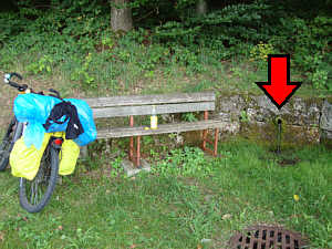 Als ich die Bank erreicht hatte und ums Eck dort gucken konnte, da sprudelte aus dem Berg eine Quelle! Jaaaha! Da hielt ich gleich meine paar Schluck Orangensaft noch drunter und trank erst mal die halbe Flasche leer. Gleich nochmal aufgefüllt, kurz noch Rast gemacht und dann schaffte ich auch noch den Berg.