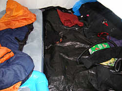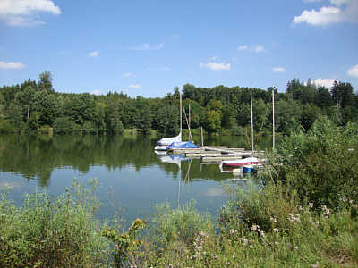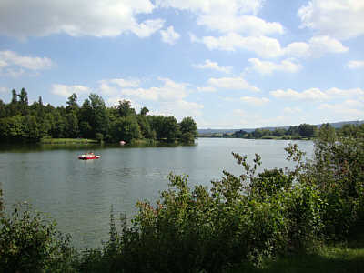 In der Nacht stellte ich dann bald fest, dass mein Luftbett offensichtlich leck war. Es musste ein kleines Loch haben, denn es machte zwar nicht "tschhh", aber nach ca. 2 Stunden war die Luft so gut wie draußen. Das ärgerte mich. Außerdem musste ich auf Pinkeln und überlegte, ob ich es mir antun sollte, aufzustehen und in die nasse Wiese rauszulatschen, oder ob es nicht so schlimm ist und ich vielleicht doch wieder einschlaf. Ich drehte mich genervt um, das halbleere Luftbett quietschte, das Zelt wackelte und ... nicht weit vom Zelt weg grunzte etwas ziemlich tief und grantig und trampelte wie ein Pferd. Um Himmels Willen, eine Wildsau!!! Jetzt war ich hellwach, musste auch nicht mehr auf Pinkeln, das platte Luftbett störte mich überhaupt nicht mehr, ich lag stocksteif drauf und wagte keinen Mucks mehr. Was mach ich denn, wenn da auf einmal eine Wildsau gegen mein Zelt rennt? Fieberhaft überlegte ich: ...aber Wildsäue treten doch eigentlich nur in Rudeln auf, dann hätte ich doch mehrere hören müssen. Ich hatte eine Heidenangst, aber das Grunzen wiederholte sich nicht und irgendwann schlief ich dann auch wieder ein.