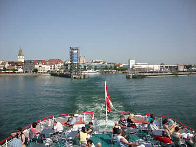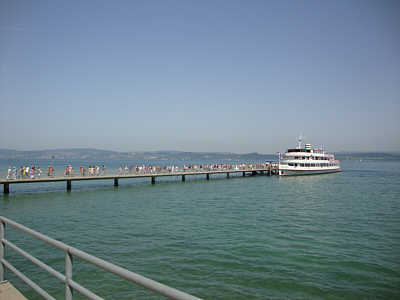 Also ich bin nach dem Frühstücken an den Hafen und hab mir Tickets gekauft: Erst mal ein Bahnticket für morgen - nach Hause - und dann ein Schiffsticket für die Überfahrt zur Insel Mainau. Das war gesalzen teuer, weil es ist nicht so, dass man da einfach auf die Insel rüber schippert, sondern um von Bord gehen zu dürfen auf die Insel kostet es noch einmal Eintritt! Auf so eine Kommerz-Idee muss man erst einmal kommen, hey! Ich nahm das Kombiticket mit Hin- und Rückfahrt plus Inseleintritt für 34 €.