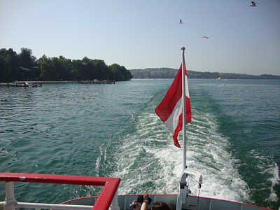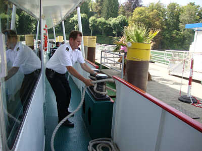 Mit recht beeindruckender Kraft manövrierte das Schiff in dem engen Hafen herum und schipperte dann hinaus auf den See.