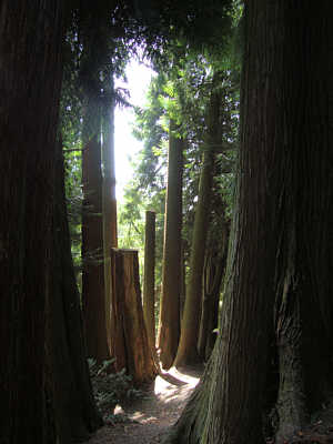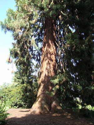 Es wachsen auch ziemlich dicke Bäume auf Mainau. Diese da haben einen Stamm von 5 Metern Durchmesser und können bis zu 12 Meter dick werden.