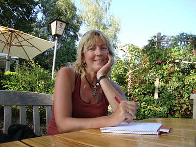 Ich kam völlig beeindruckt zurück nach Friedrichshafen. Dort suchte ich erst mal relativ betört von den ganzen Blumendüften mein Fahrrad und radelte in die Pizzeria von gestern. Da hockte ich, schrieb Tagebuch und drückte mir ne fette Lachs-Tagliatelle rein.
